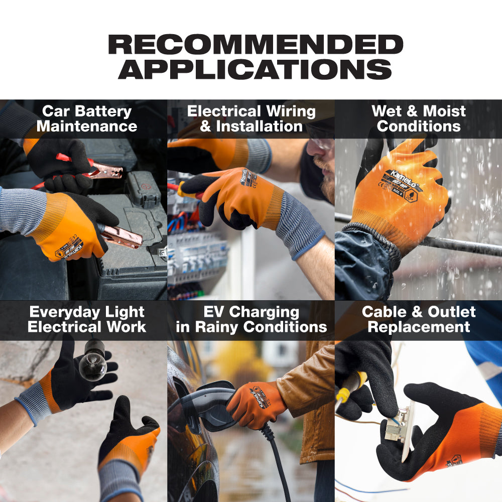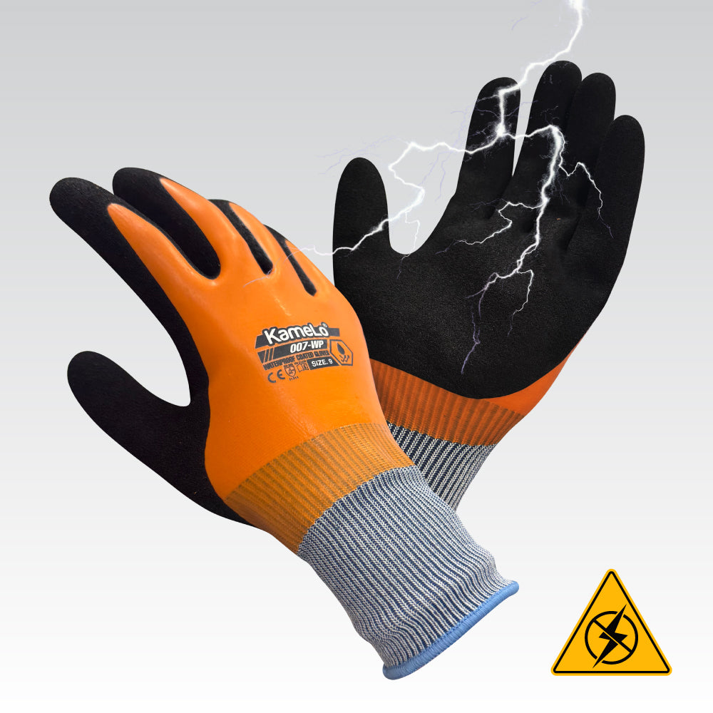 The KameLo 007-WP is a coated work glove designed for electrical maintenance tasks such as wiring and installation, outlet and cable replacement, car battery servicing, and EV charging. It delivers improved grip and handling control, helping users manage tools and components more securely on the job.